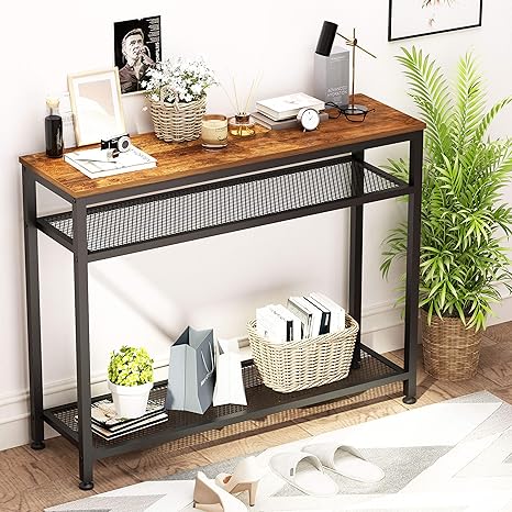 You'll be surprised what a difference an entry table makes. If you are hoping to add finishing touches to your living room or foyer, industrial tables that are the right size for your space might be just the pieces to tie the room together. It features a physically distressed plank effect top built from pine solids and veneers. 5 out of 5 stars. Corner brackets with rivets give the. These entry tables make a bold statement with mixed materials and an industrial vibe. Even a small foyer table can hold its own by adding a simple lamp and an orchid in a decorative pot. When a console table with storage is topped with a pair of lamps and a mirror, your good taste is well reflected. 5% coupon applied at checkout. This simple and timeless industrial console table exuding elegance and rusticity. Kingso industrial console table, hallway table with 2 mesh shelves, sofa table for living room bedroom entryway study balcony hallway workshop, easy assembly. Add style to your home, with pieces that add to your decor while providing hidden storage. Shop for industrial sofa tables that blend various styles to match any living room, hallway or foyer decor.